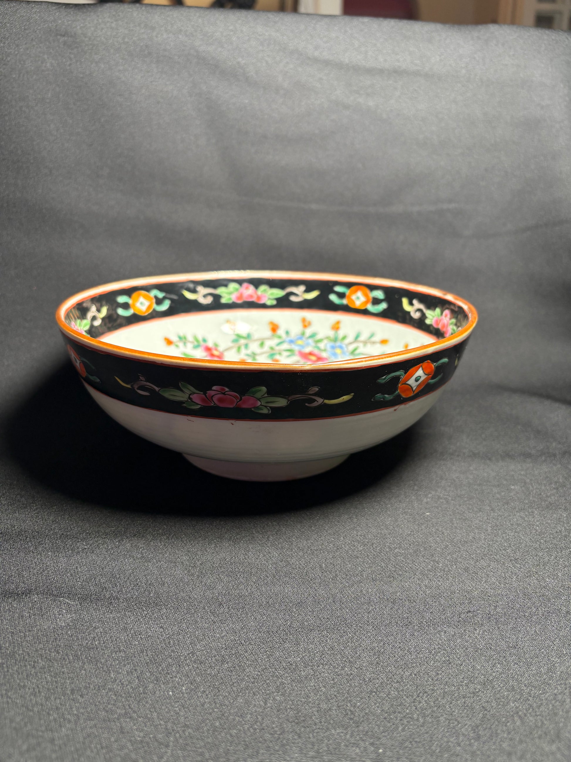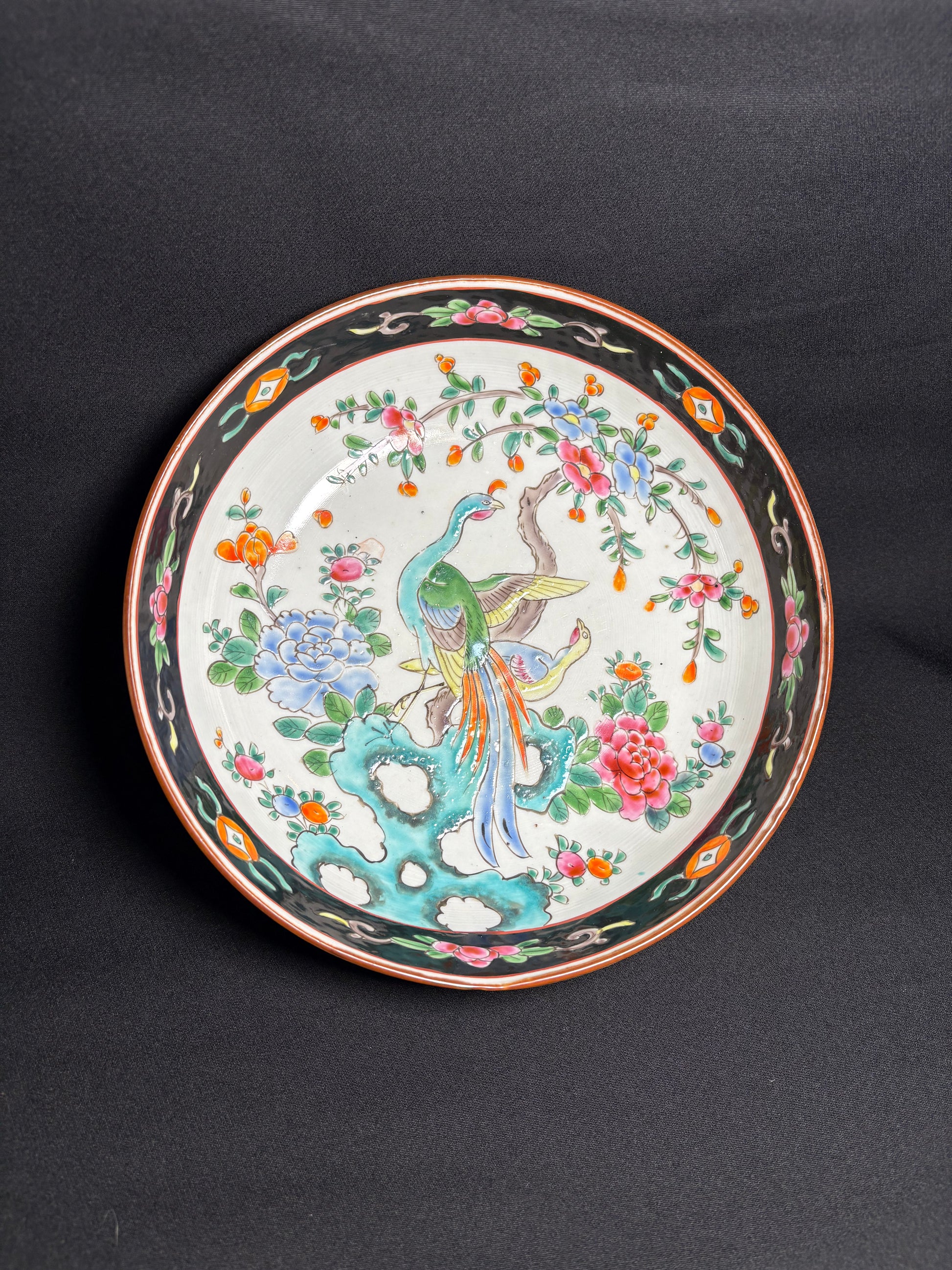 This exquisite hand-painted Arita porcelain bowl from Kyushu, Japan, dates to around 1895 and represents the artistry of the late Meiji period. The bowl features overglaze enamel decoration with intricate motifs of phoenixes and peonies (both traditional symbols in Japanese art), the phoenix representing virtue and renewal, and the peony symbolizing prosperity and honour.